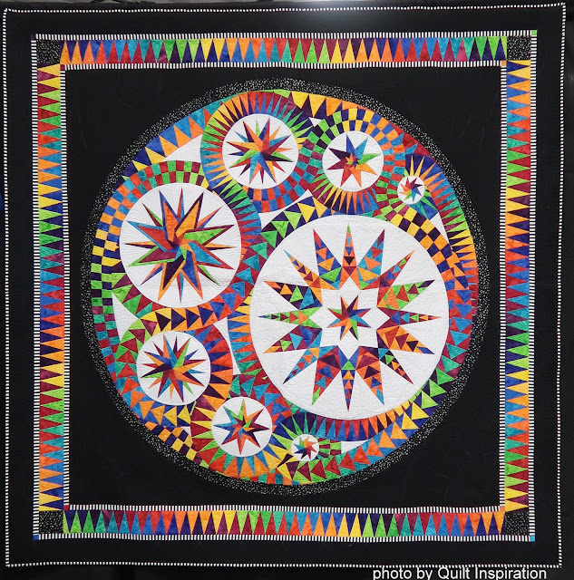 Athena Taylor won First Place in the Modern Quilt category for this fantastic rainbow quilt, filled with stars, curves, flying geese, and New York Beauty blocks. It was based on the Infinity quilt pattern by Jacqueline de Jonge.